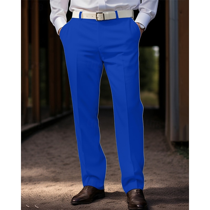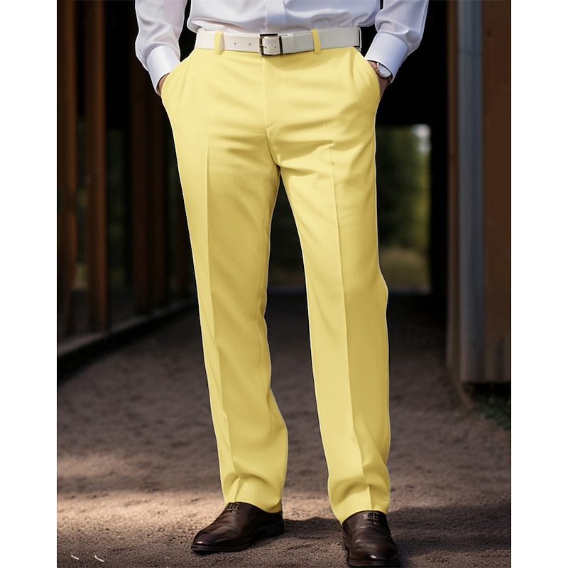 More information about Men's Graduation Dress Pants Trousers Chinos Buttons Pocket Solid Color Comfort Formal Party Work Fashion Classic Style Coral Pink Yellow Micro-elastic