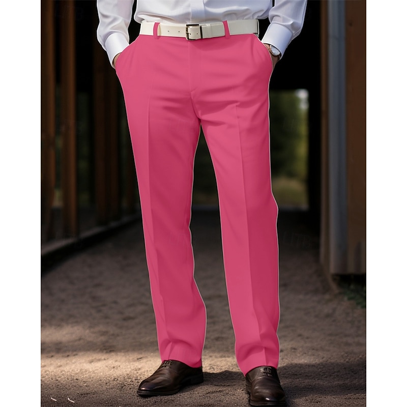 HOT ! Men's Graduation Dress Pants Trousers Chinos Buttons Pocket Solid Color Comfort Formal Party Work Fashion Classic Style Coral Pink Yellow Micro-elastic