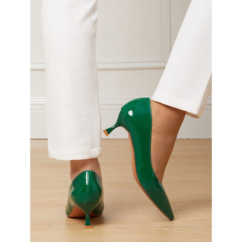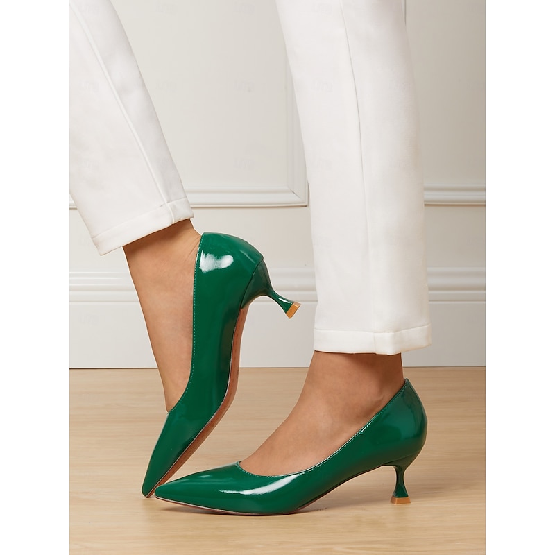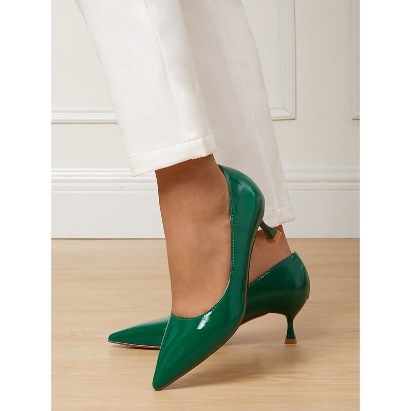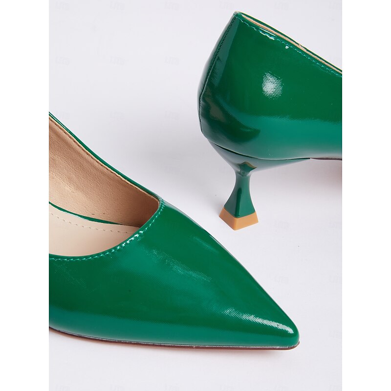 Green Patent Leather Pointed Toe Pumps for Women – Elegant Kitten Heel Shoes for Formal Events and Office Wear 24