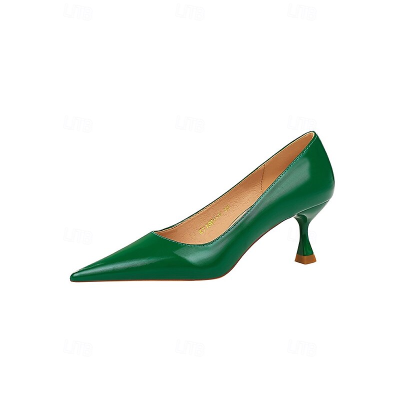 HOT ! Green Patent Leather Pointed Toe Pumps for Women – Elegant Kitten Heel Shoes for Formal Events and Office Wear