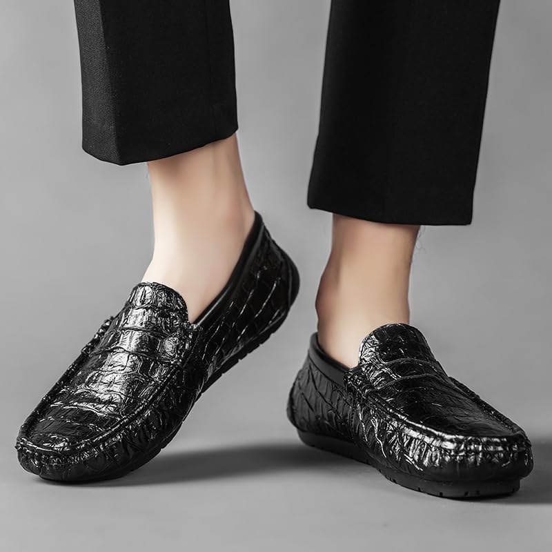 Men's Loafers Shoes Round Toe Crocodile Print Faux Leather Penny Driving Loafers Comfortable Slip Resistant Flat Heel Walking Party Slip-ons 6