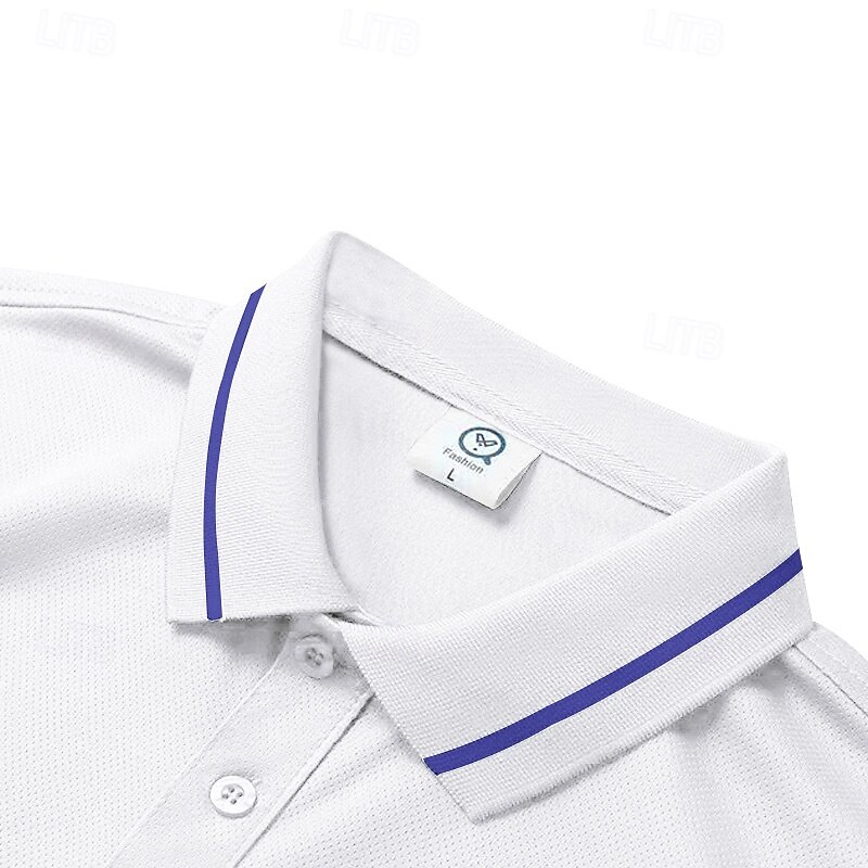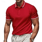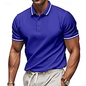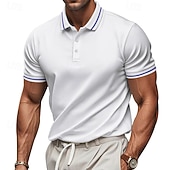 More information about Men's Polo Golf Shirt Business Casual Ribbed Polo Collar Short Sleeve Fashion Basic Solid Color Plain Buttons Summer Spring & Fall Regular Fit Black White Pink Red Navy Blue Royal Blue Polo