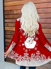 More information about Women's Winter Coat Lightweight Comfortable Print Open Front Vintage Fashion Casual Santa Claus Vacation Casual Long Collarless Regular Fit Long Sleeve Outerwear Red Spring Fall