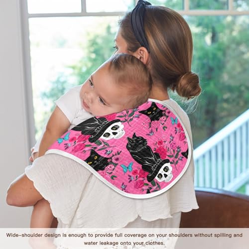J JOYSAY Skull Cat Flowers Pink Baby Burp Cloths for Boys Girls Large 22''x11'' Cotton 4 Layer Baby Bibs for Girl Spit Up one sizex1 6