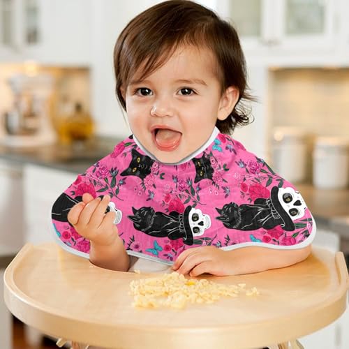 J JOYSAY Skull Cat Flowers Pink Baby Burp Cloths for Boys Girls Large 22''x11'' Cotton 4 Layer Baby Bibs for Girl Spit Up one sizex1 1