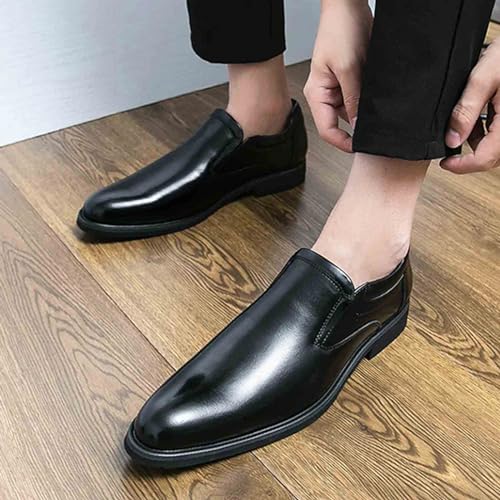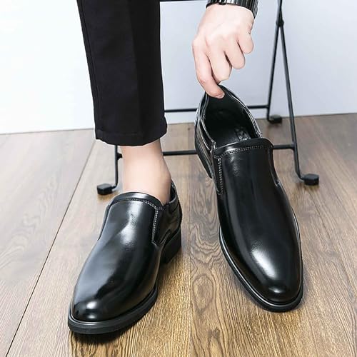 Men's Pointed Toe Slip on Dress Oxfords,Fashion Chunky Heel Loafers Classic Business Formal Leather Shoes 6