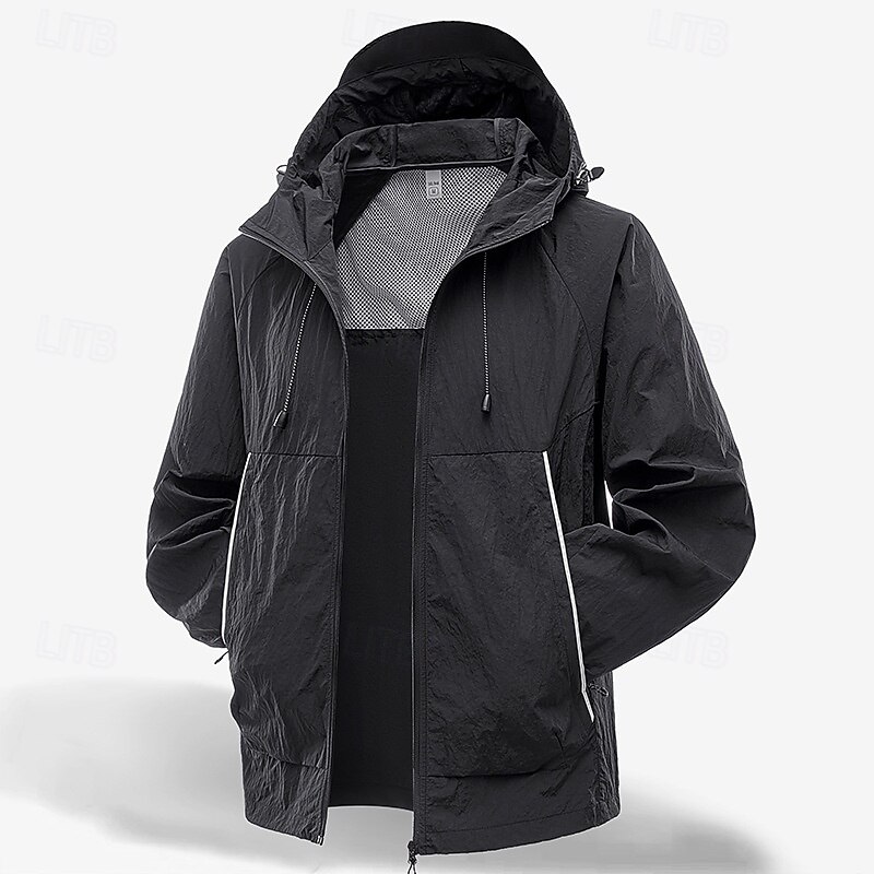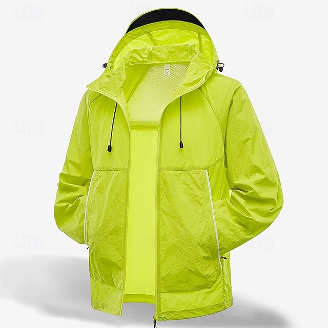 More information about Men's Lightweight Jacket Outdoor Jacket Skin Jacket Casual Jacket Vacation Daily UPF50+ Windbreaker Pocket Summer Spring Plain Fashion Classic Hooded Regular Black Ivory Light Green Orange Green
