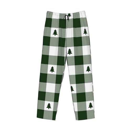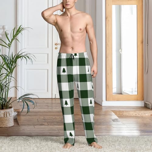 HOT ! Green White Christmas Tree Lumberjack Plaid Mens Pajama Pants Comfy Lounge Pants Casual Pjs Bottoms