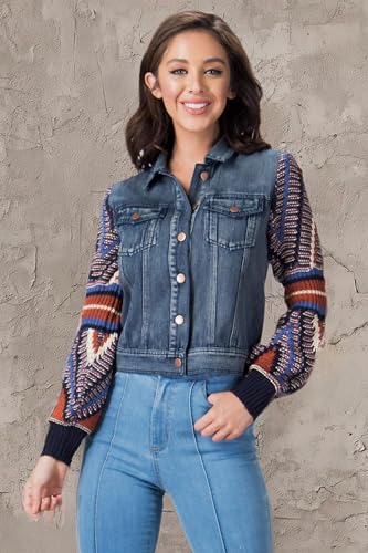 Why Choose Flying Tomato Women's Boho Sweater Sleeve Denim Jacket?