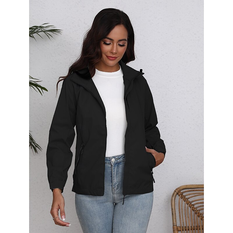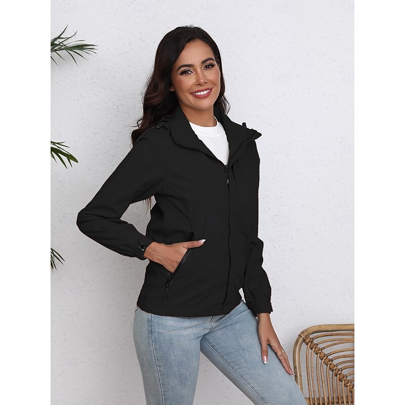 Women's Jacket Trench Coat School Zipper Solid Color Waterproof Simple Regular Fit Outerwear Long Sleeve Fall Black S 10