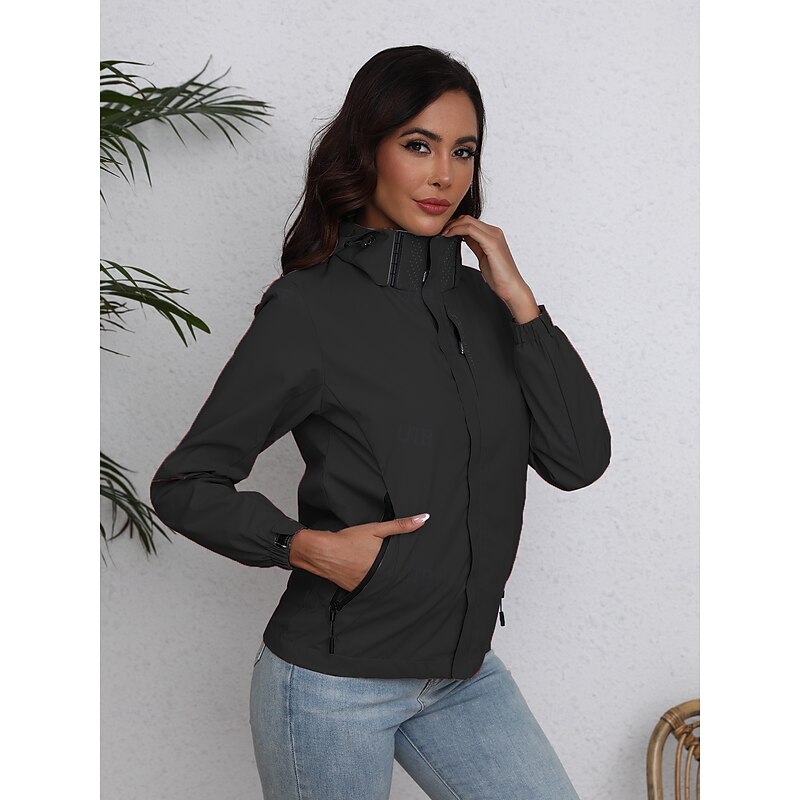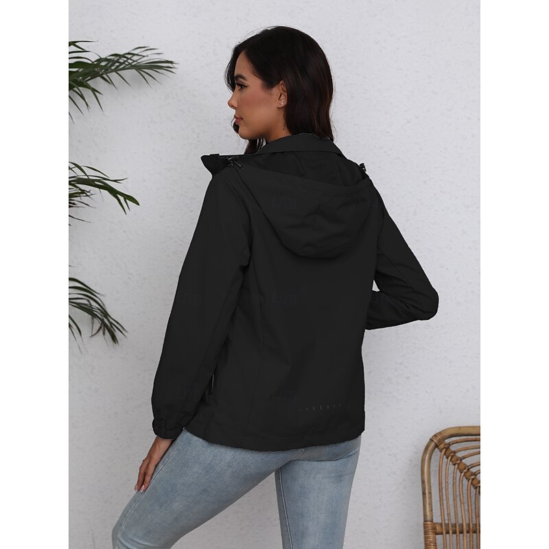 Women's Jacket Trench Coat School Zipper Solid Color Waterproof Simple Regular Fit Outerwear Long Sleeve Fall Black S 8