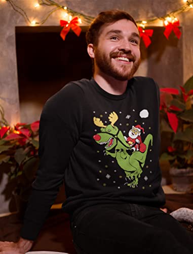 Tstars T-Rex Santa Ride Funny Ugly Christmas Sweater Sweatshirt Large Black 1