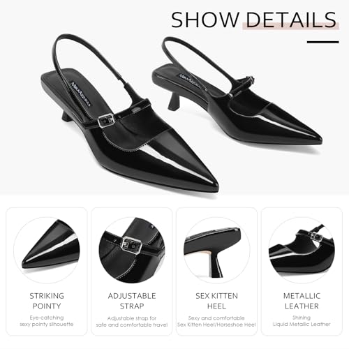 • Chic Style: Our black slingback kitten heel pumps feature a striking pointed toe silhouette, strap closure and modern horseshoe heel design to add a fashionable and personal touch to your look
