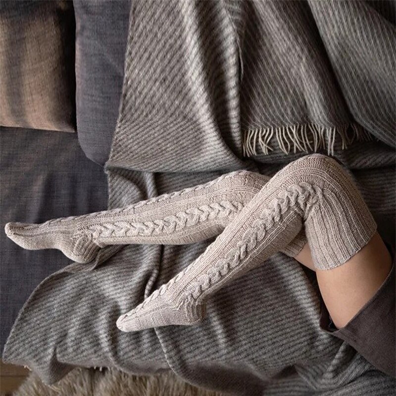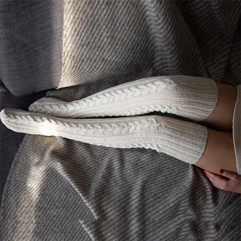 HOT ! Women's Knee High Socks Stockings Outdoor Holiday Solid Color Knit Basic Casual Elastic Warm 1 Pair
