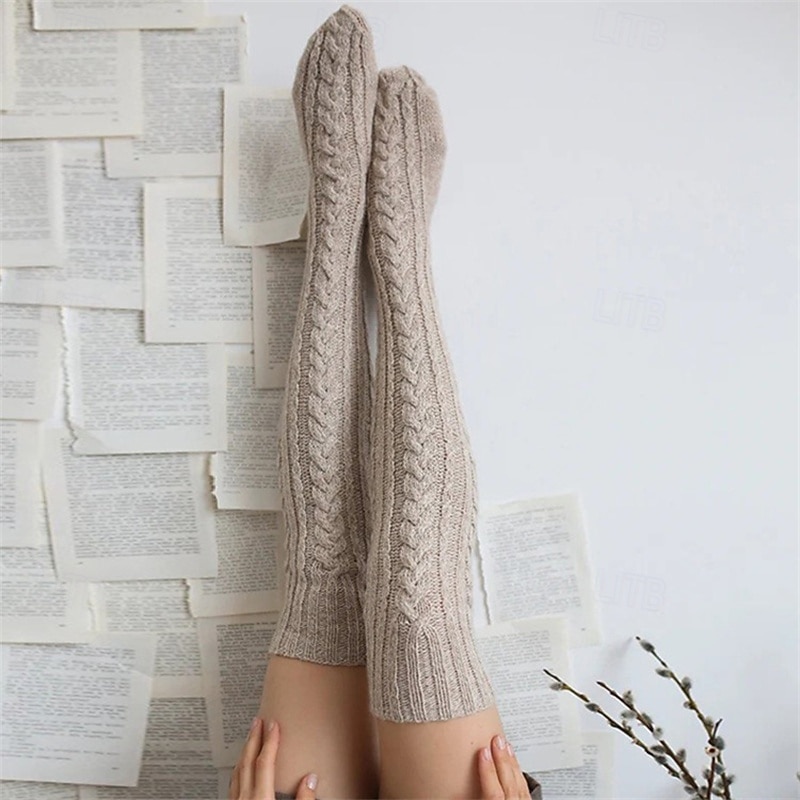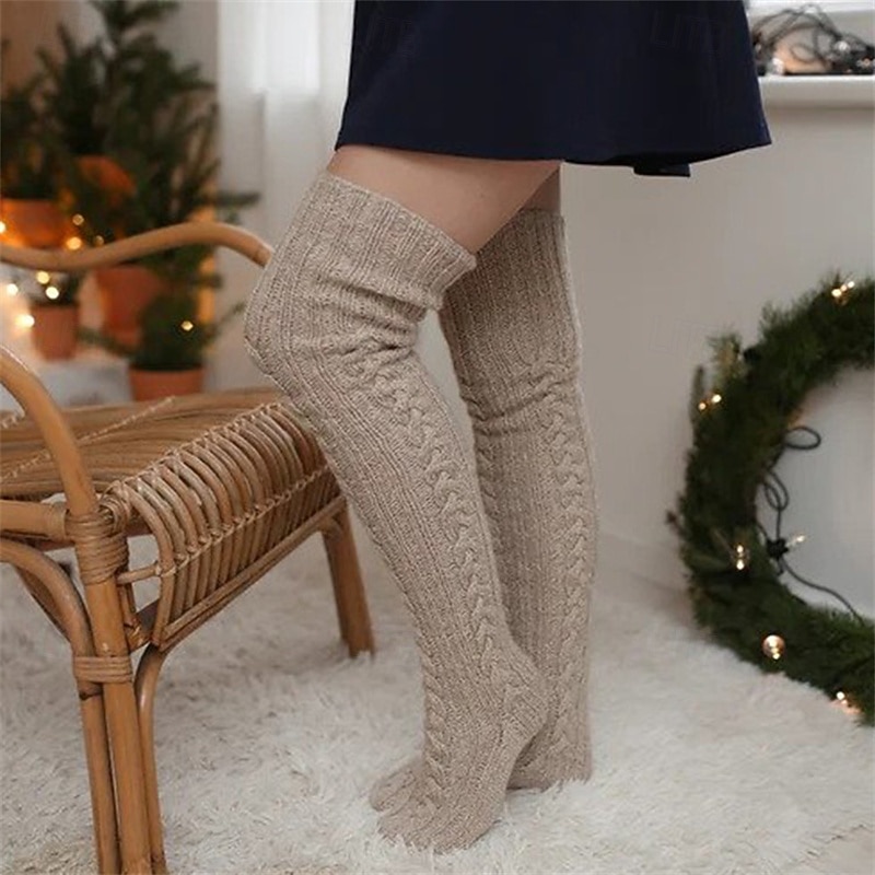 More information about Women's Knee High Socks Stockings Outdoor Holiday Solid Color Knit Basic Casual Elastic Warm 1 Pair