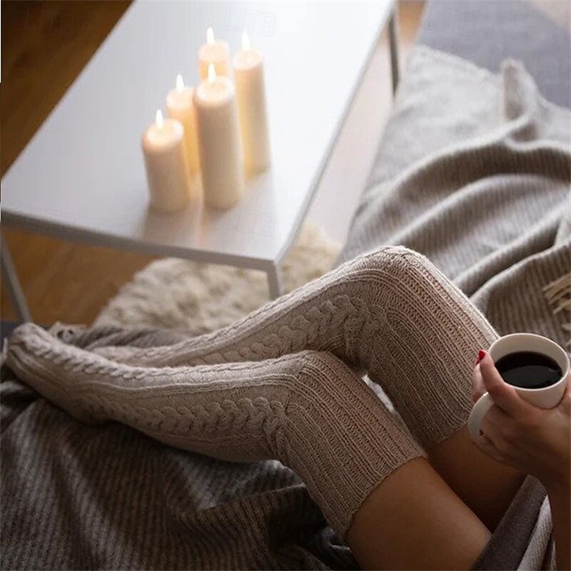 Women's Knee High Socks Stockings Outdoor Holiday Solid Color Knit Basic Casual Elastic Warm 1 Pair 10