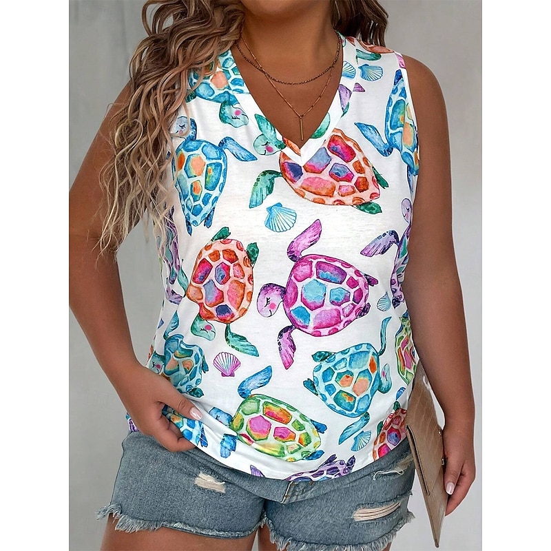 trending ! Women's Plus Size Tops T Shirt Graphic Animal Sleeveless V Neck Casual Daily Polyester Summer Blue