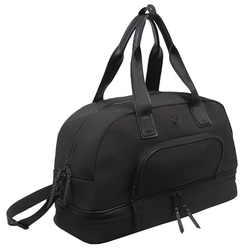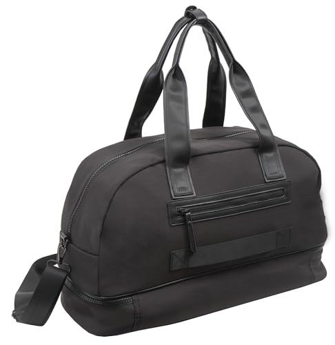 Joan & David 22" Drop Bottom Travel Weekender Overnight Gym Duffel Bag, Includes Front Zip Pocket, Interior Mesh Zip, Detachable Pouch with TSA Approved Bottles (Black) 1