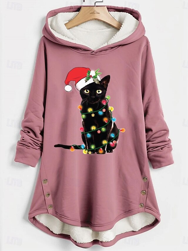 More information about Women's Pullover Hoodie Sweatshirt Graphic Animal Cat Warm Casual Fuzzy Long Sleeve Hooded Long Tops Casual Sports Print Pink Blue Gray Fall Winter