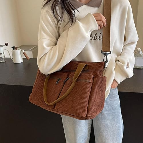 More information about Women Bag Large Capacity Shoulder Bag with Pockets Korean Styles Cord Handbag Corduroy Crossbody Bag Top Handle Bag