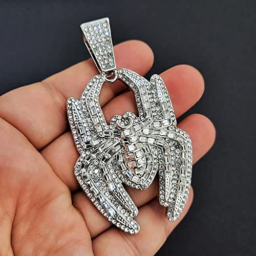 Silver plated Large SPIDER Icy Charm Pendant & 12mm 16" 18" 20" Iced Baguette Stone Chain Hip Hop Jewelry Bling Fashion Necklace 1