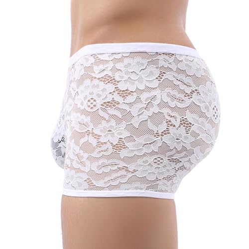 Cambkatl Men's Floral Lace Sheer Boxers Shorts See Through Bikini Sexy Lingerie Nightclub Underwear Shorts 6