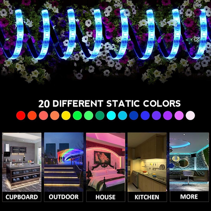 10m 32.8ft LED Strip Light Dimmable Light Sets RGB Color Changing 600 LEDs 5050 SMD Remote Control IP44 for DIY Home Party Décor 14