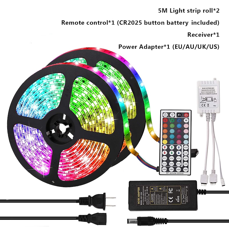 10m 32.8ft LED Strip Light Dimmable Light Sets RGB Color Changing 600 LEDs 5050 SMD Remote Control IP44 for DIY Home Party Décor 12