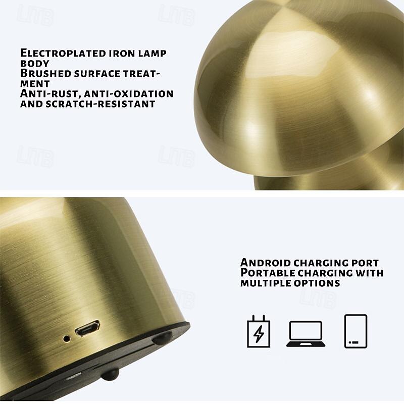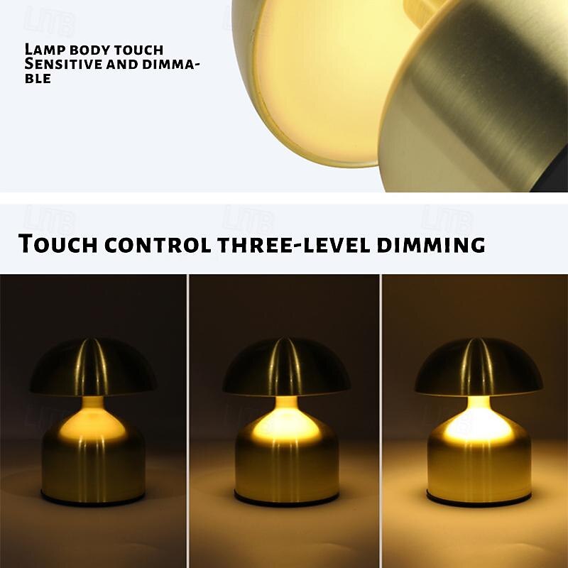 5.5" Mushroom Shaped Table Lamp Metal Rechargeable with 3-color Dimming Indoor Bedroom Living Room Atmosphere Table Lamp 1