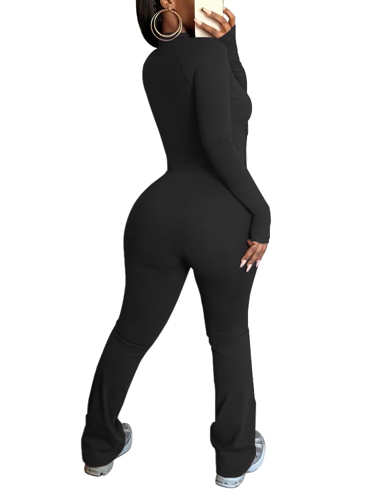• Design: Long sleeves with thumb - holes at cuffs keep sleeves in place during movement and add a sporty touch. Full zip - front closure, side zip pockets, and high - waisted flare legs elongate your silhouette, paired with a bodycon fit to accentuate curves