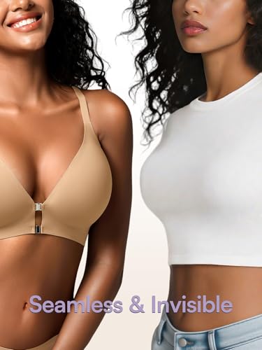 Racerback Bras with Metal Magnetic Front Closure - S-XL Wireless for Women No Underwire Seamless Supportive Bralettes 4