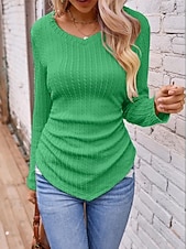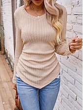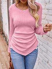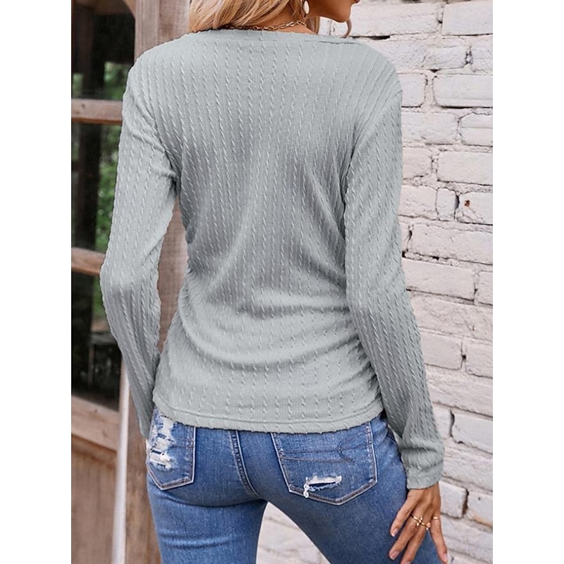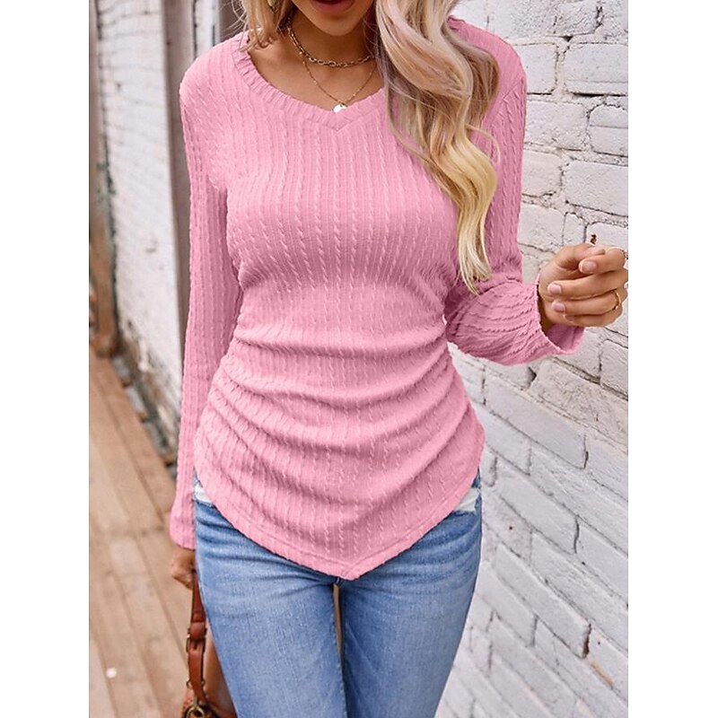 More information about Women's T Shirt Casual Long Sleeve Regular Tops V Neck Daily Pink Green Khaki Light Grey Spring Fall