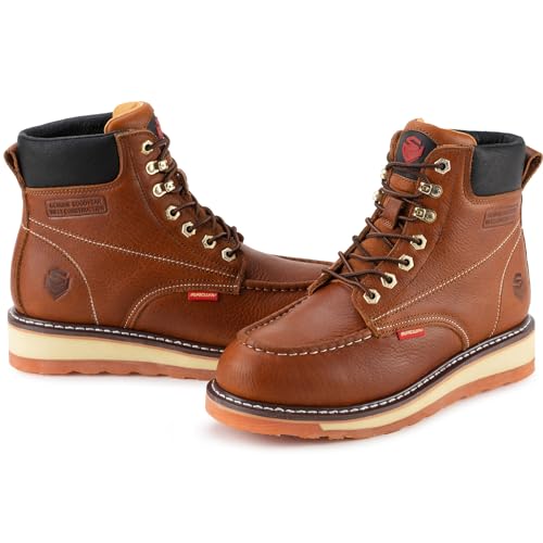 SUREWAY Mens Heavy Duty Soft/Composite/Steel Toe Work Boots for Men-Comfortable,Goodyear Welt,Full Grain Leather,6 in Wedge Moc Toe Construction Boots/Shoes,Waterproof Steel Toe Light Brown,Size 14 5