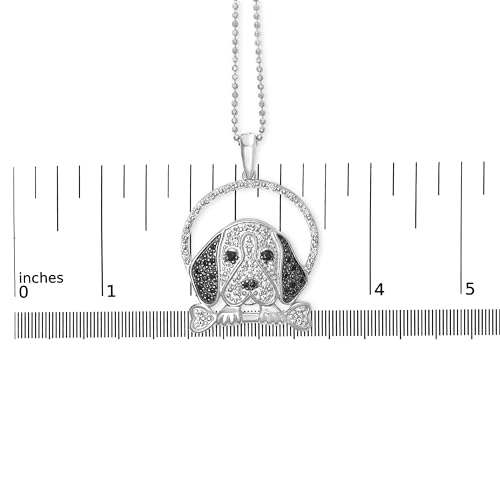 • IRRESISTIBLE GLAMOUR - Celebrate your love for beagles with this .925 sterling silver pendant necklace, featuring a charming beagle dog and bone design encrusted with 1/4 cttw glamorous natural white and black diamonds (I-J Color, I2-I3 Clarity). The rhodium-plated finish enhances its shine, and the 18" bead chain with a secure lobster claw clasp ensures everyday elegance and durability.