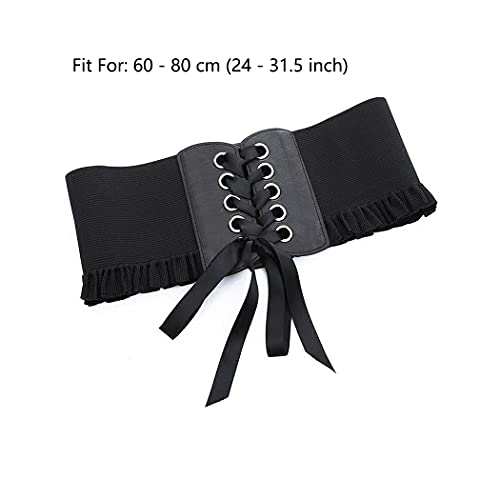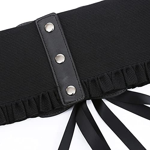 Womens Lace-up Corset Cinch Waistband Waspie Elastic Waist Belt Retro Tied Wide Belt Vintage Bandage Elasticity Girdle Wrap for Girls Halloween Costume – Black YS001 5