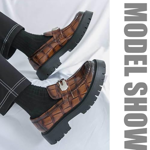 Men's Patent Leather Printed Platform Loafers Retro Round Toe Lug Sole Anti-Slip Formal Business Slip-On Shoes Casual Work Penny Loafers 7