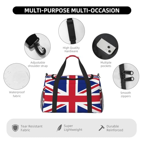 Union Jack All Uk Flag Duffel Travel Gym Sports Overnight Weekend Duffle Bags For Men Women 7