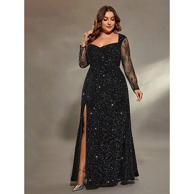 HOT ! Mermaid / Trumpet Evening Gown Elegant Dress Formal Wedding Floor Length Long Sleeve Sweetheart Tulle with Slit