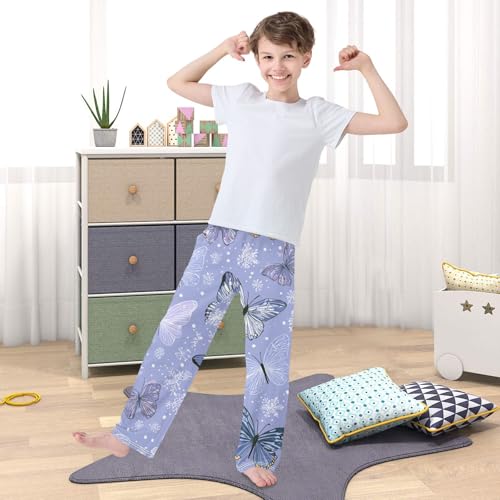 Butterfly Snowflake Boys Long Pants Soft Trousers Elastic Waist Kids Lounge Bottoms with Pockets S-XL 4