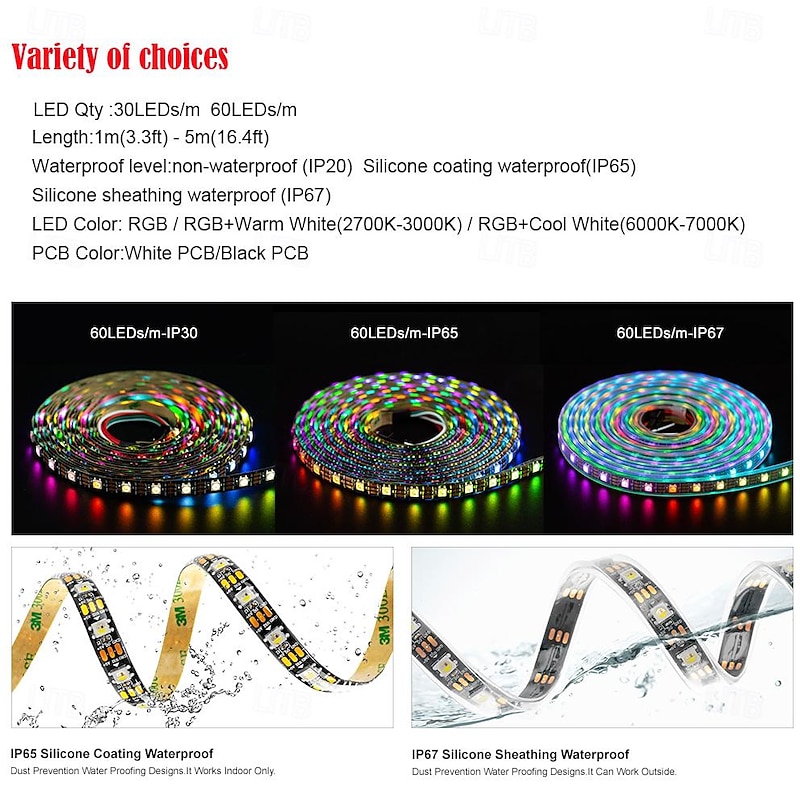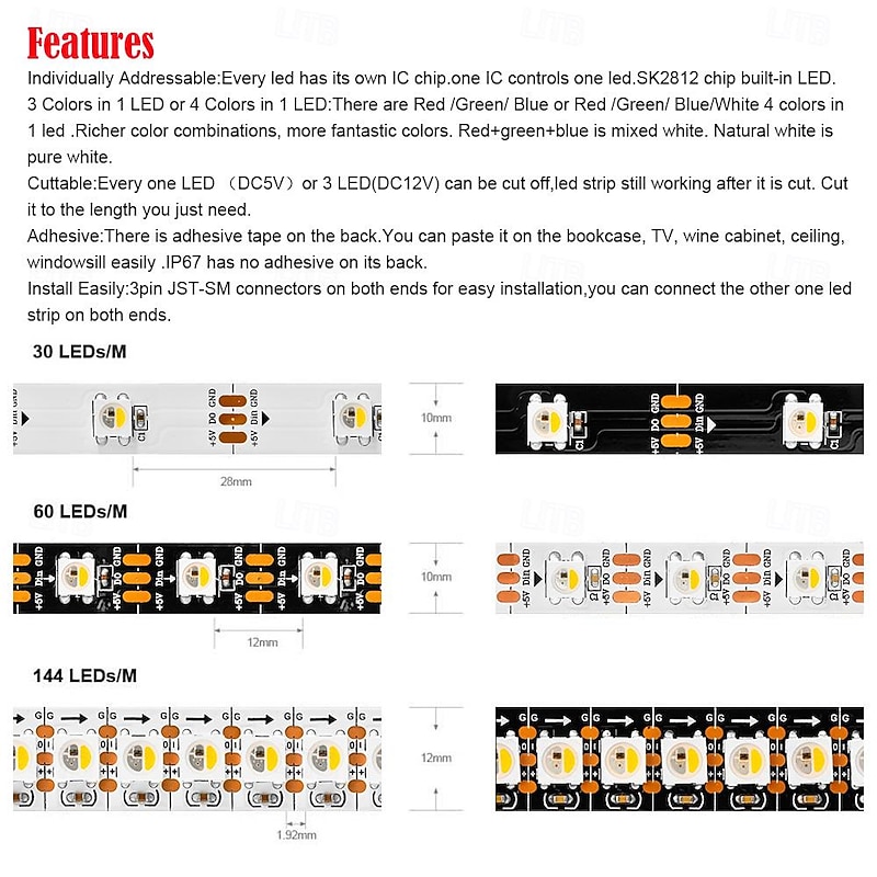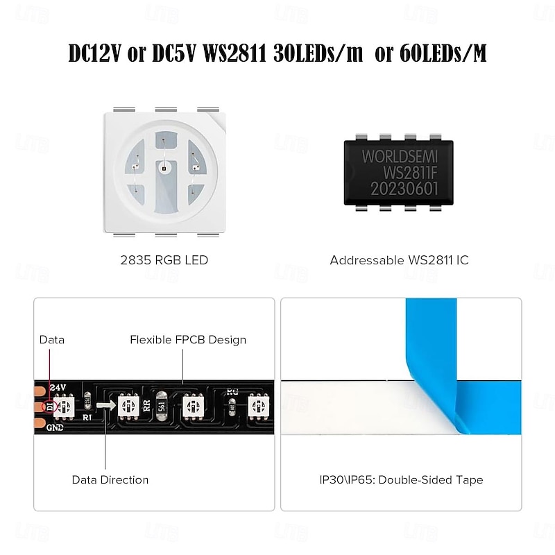 $14.29 - WS2812 RGBIC Addressable LED Strip Light Dream Color Strip Light 8.2FT/16.4FT 20Pixels/m Waterproof Black and White PCB Flexible DC12V Chase Effect Suitable for Indoor and Outdoor Activity Atmosphere Decoration 2025. Shop for cheap Waterproof Strip Lights online? Buy at lightinthebox.com on sale today!