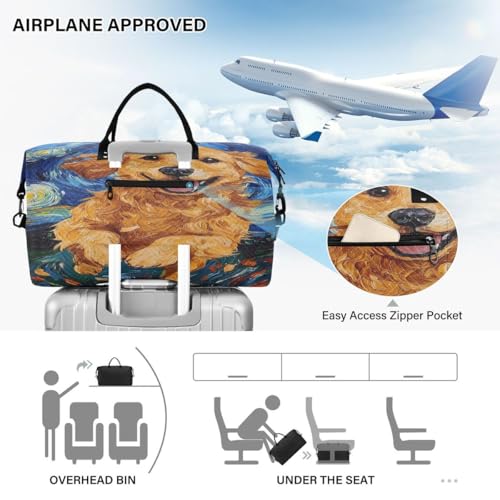 Golden Retriever Dog Travel Duffle Bag Gym Bag Weekender Bags with Toiletry Bag Travel Trip Tote Bag 6