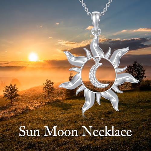 Diamond Sun Necklace 925 Sterling Silver Sun and Moon Pendant Necklace Dainty Jewelry Gifts for Women 5