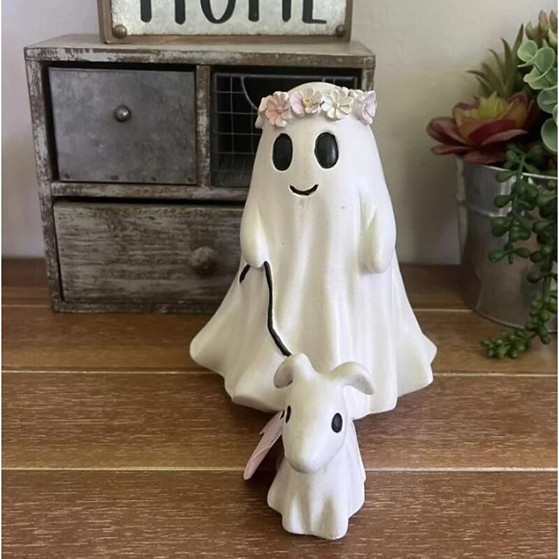 Highlights Handcrafted Quality : Each Ghost Dog Walking Statue is meticulously handmade, ensuring a unique and charming addition to your Halloween decor that combines cuteness and a touch of horror. Versatile Decoration : Perfect for various settings such as rustic, farmhouse, or cottage-style corners, bookshelves, or displays. Adds a playful and atmospheric vibe to costume parties, escape room games, and any festive occasion. Durable & Long-Lasting : Made of strong, durable resin, this statue is designed for both indoor and outdoor use. Its sturdy construction ensures it withstands the test of time in any environment. Enchanting Home Decor : Ideal for kids' bedrooms as a delightful nightlight, living rooms to add enchantment and warmth, and as a unique touch to your Halloween decorations, creating a spooky yet adorable ambiance. Perfect Gift Idea : This charming Ghost Dog Walking Statue makes an excellent gift for children, friends, and family who appreciate unique and cute home accessories. Package includes 1 x 2024 Ghost Walking Dog Statue.