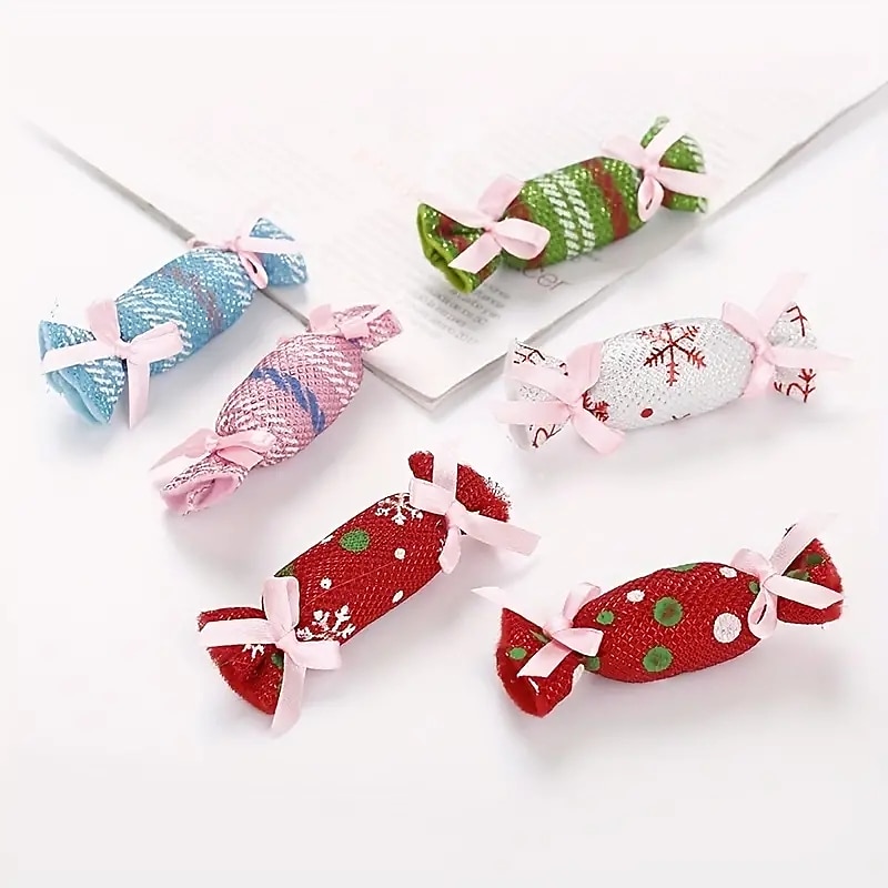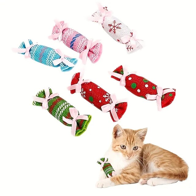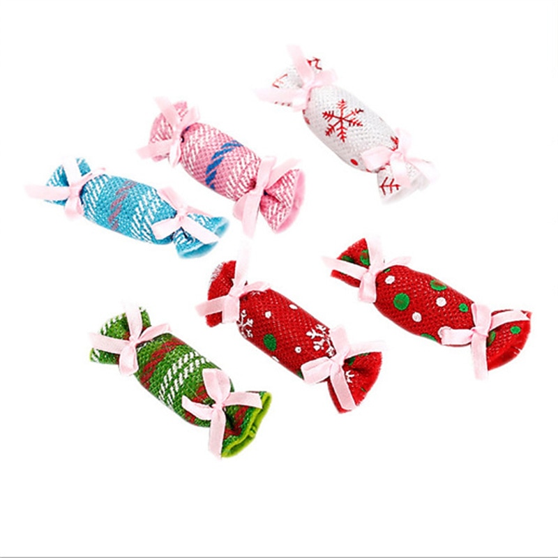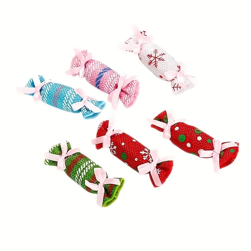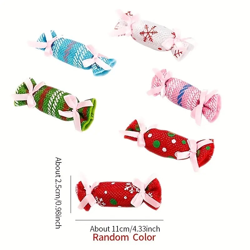2pcs Random Color Christmas Candy Design Pet Plush Toy ChewDurable Cat Toy For Cat And Dog Supplies 6