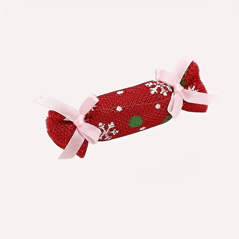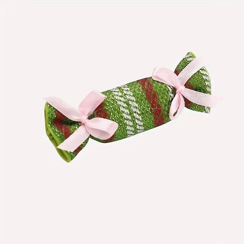 2pcs Random Color Christmas Candy Design Pet Plush Toy ChewDurable Cat Toy For Cat And Dog Supplies 5