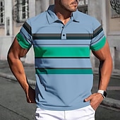 More information about Men's Striped Rugby Polo Short Sleeve Polo Shirts Collared Shirts Casual School Outdoor Athleisure Daily Wear 3D Print Summer Light Brown Blue