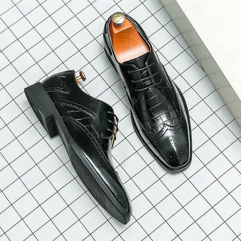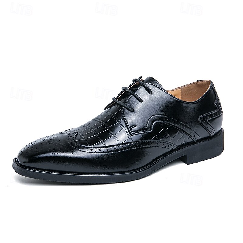 More information about Men's Brown Faux Leather Oxford Shoes with Crocodile Pattern and Brogue Detailing – Elegant Dress Shoes for Formal Events and Office Wear
