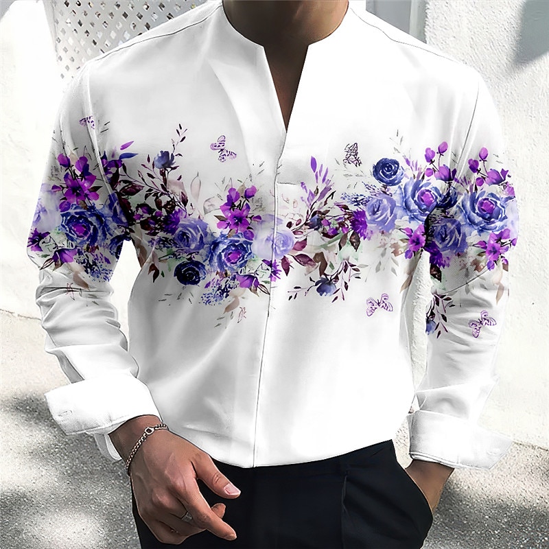 More information about Men's Floral Shirt Button Up Shirt Long Sleeve Fashion Streetwear Designer Outdoor Casual Daily Summer Fall V Neck Print Yellow Red Blue Purple Green