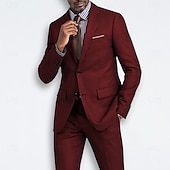 More information about Men's Wedding Business Suits Notch Lapel Burgundy Navy Blue Formal WorkWear Solid Colored Standard Fit 2 Piece Single Breasted Two-buttons