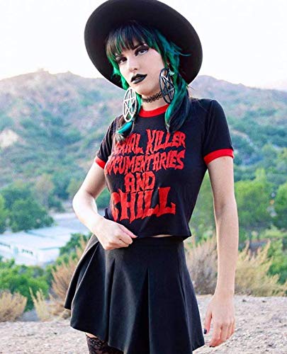 HOT ! Womens Crop Tops Summer Casual Short Sleeve Goth Halloween Graphic Cropped T Shirts